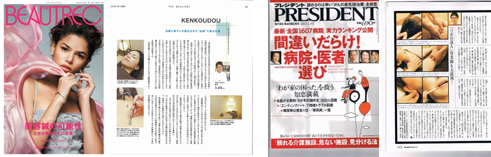 当院の治療実績や独自の治療法は、プレジデント・R25など多くのメディアに取りあげられています。高い専門性と確かな治療実績が高評価を頂き、幅広い患者様より信頼を得ております。